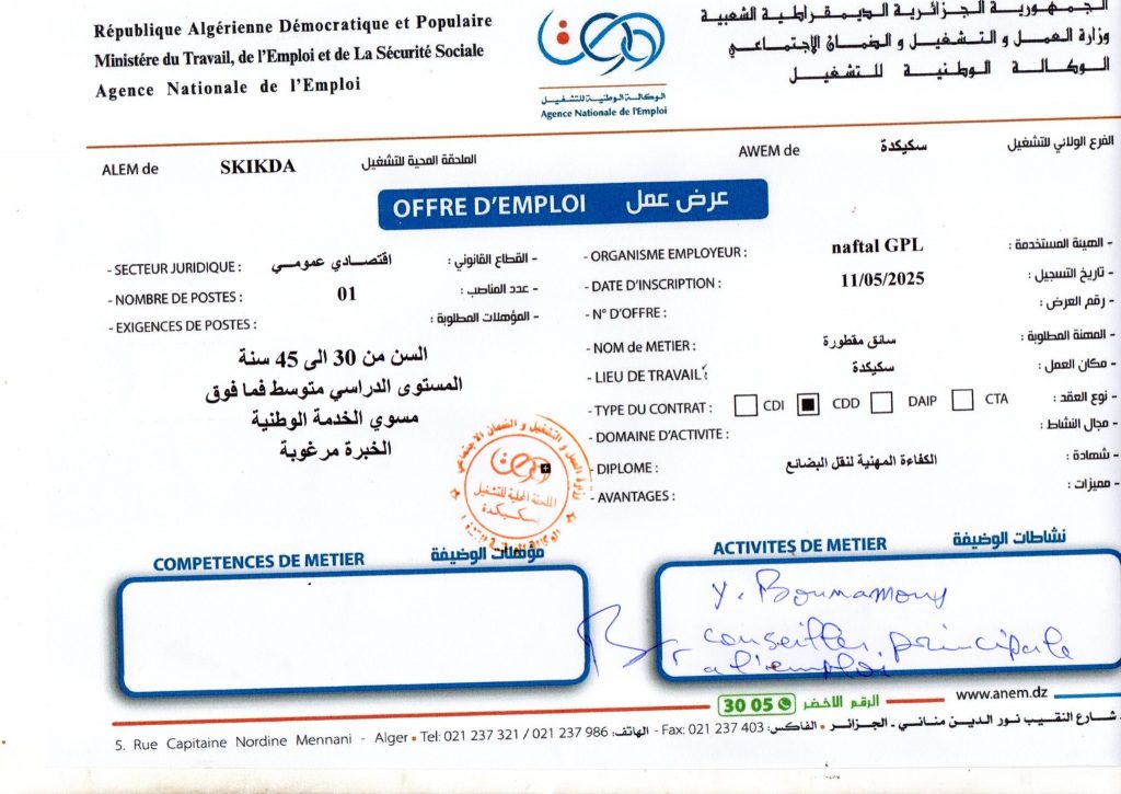- عرض عمل في الشركة المدنية لتسيير النشاطات الاجتماعية لعمال مجمع سونلغاز