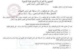 وزارة العمل و التشغيل و الضمان الاجتماعي الوكالة الوطنية للتشغيل الملحقة المحلية للتشغيل سكيكدة الفرع الولائي للتشغيل سكيكدة ads عرض عمل الهيئة المستخدمة: – ALGERIE POSTE تاريخ التسجيل: – 04/08/2025 المنصب المطلوب:- Facteur مكان العمل: سكيكدة المؤهلات المطلوبة: 3 ثانوي السن 19 إلى 40 سنة مكان العمل العربي بن مهيدي …