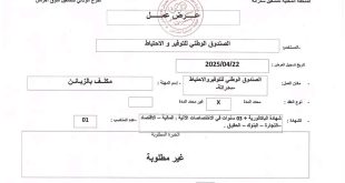 وزارة العمل و التشغيل و الضمان الإجتماعي الفرع الولائي للتشغيل-عين صالح الملحقة المحلية للتشغيل-عين صالح وكالة الوطنية للتشغيل ads عرض عمل المؤسسة: مؤسسة تسيير مصالح مطارات الجزائر المنصب المطلوب: Cadre équipement عدد المناصب: 01 تاريخ العرض: 26/08/2025 نوع العقد: CDD مدة صلاحية العرض: (مساحة فارغة) شروط: شهادة ماستر أو مهندس …
