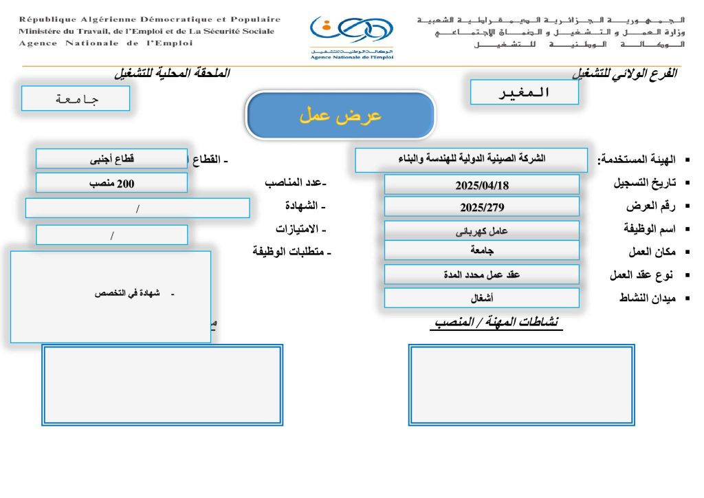 الهيئة المستخدمة: الشركة الصينية الدولية للهندسة والبناء