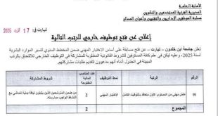 أكمل القراءة »إعلان عن مسابقات توظيف للالتحاق بسلك الاساتذة المساعدين رتبة: استاذ مساعد 2025